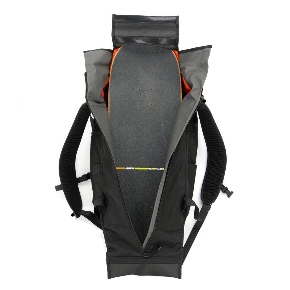 スケートボード収納スペースの内側には、PVCコーティングされた耐久性の高い生地を使用。