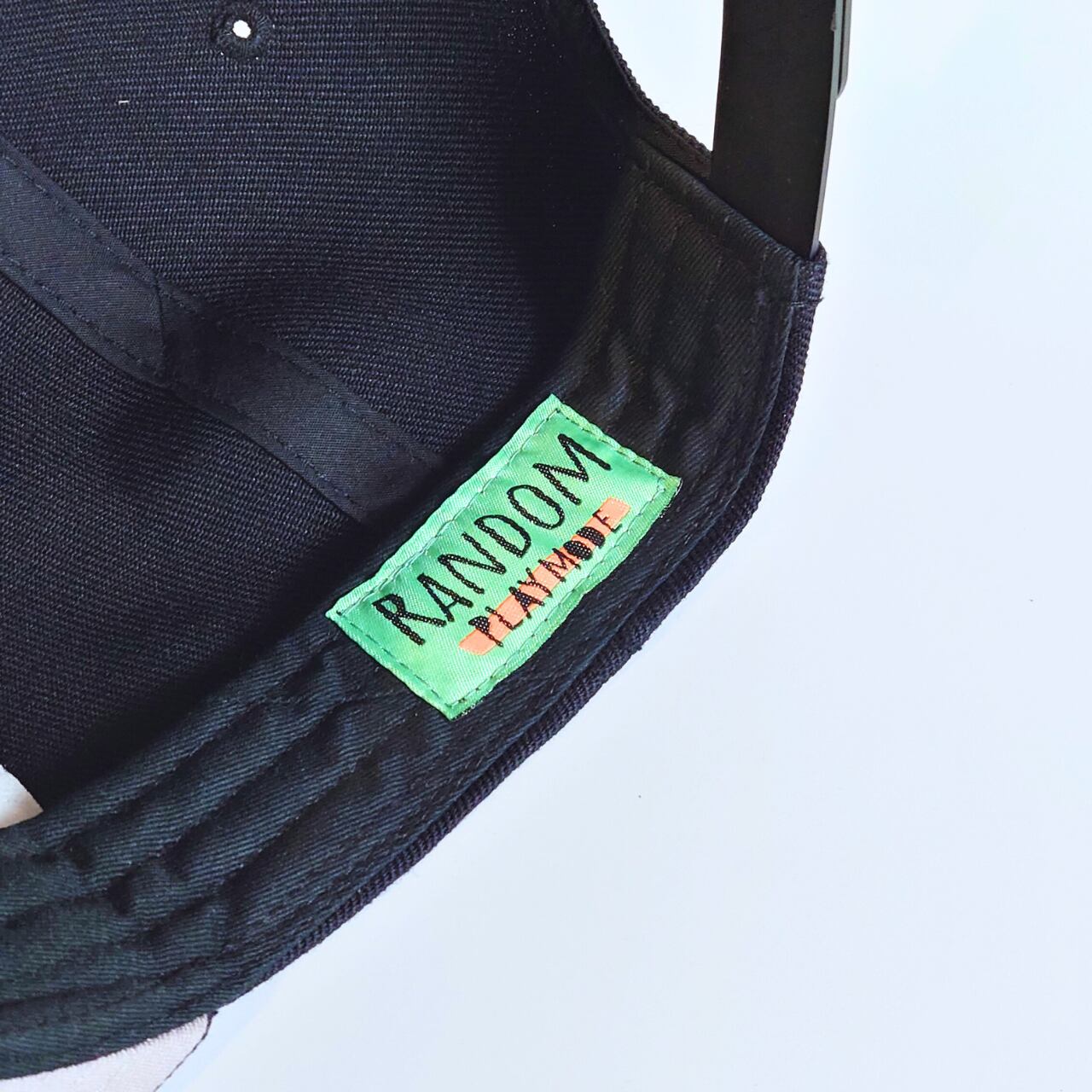 "RANDOM PLAY MODE" オリジナルロゴをワッペンでデザインしたキャップ。