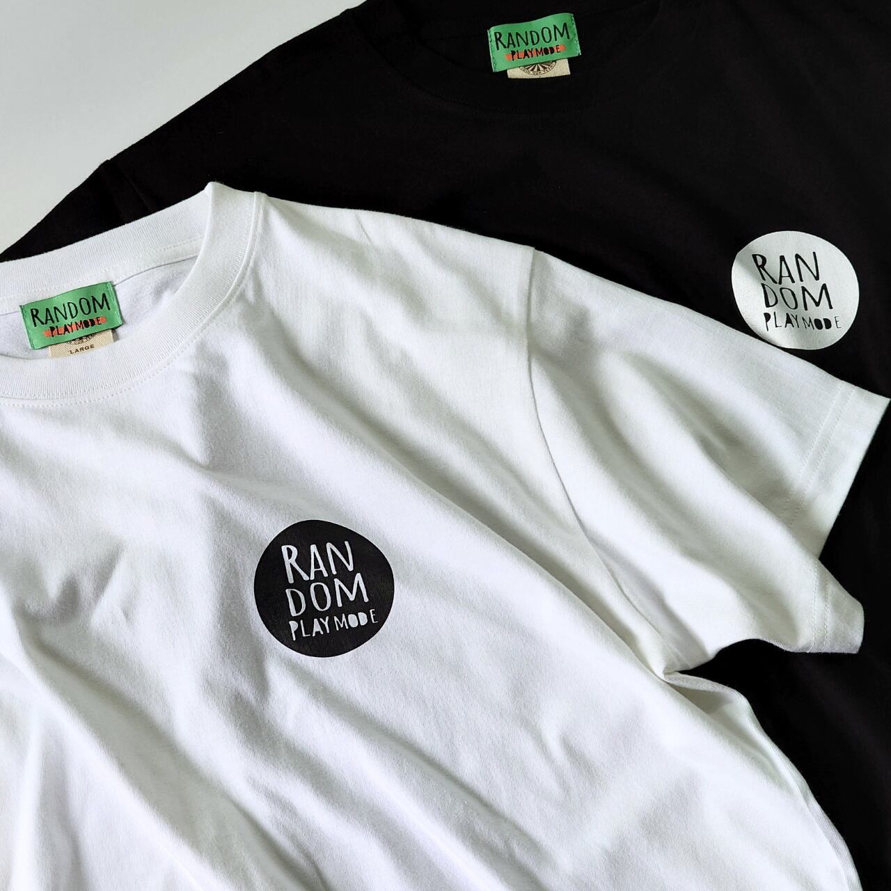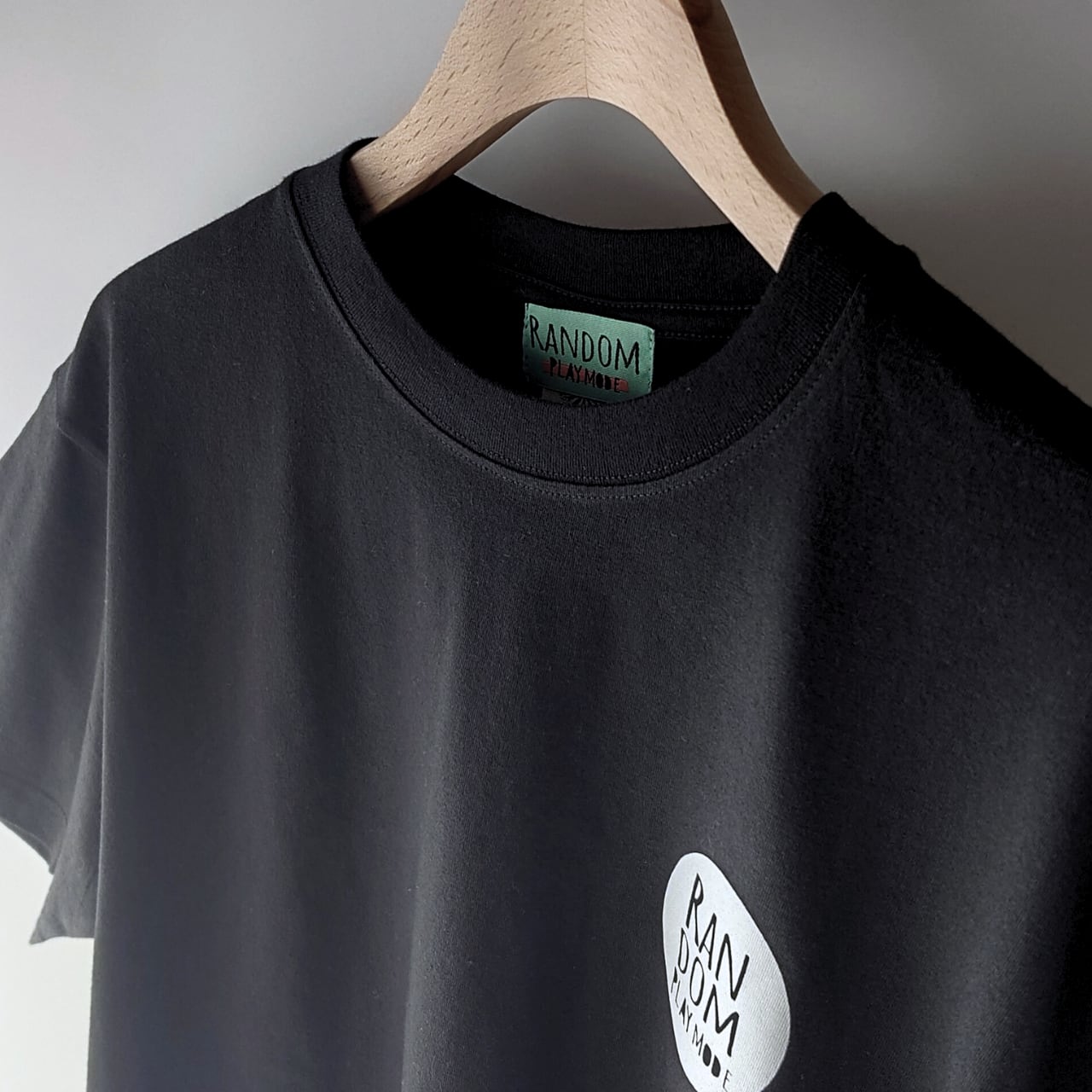 胸元に "RANDOM PLAY MODE" オリジナルロゴをプリントしたTシャツ。