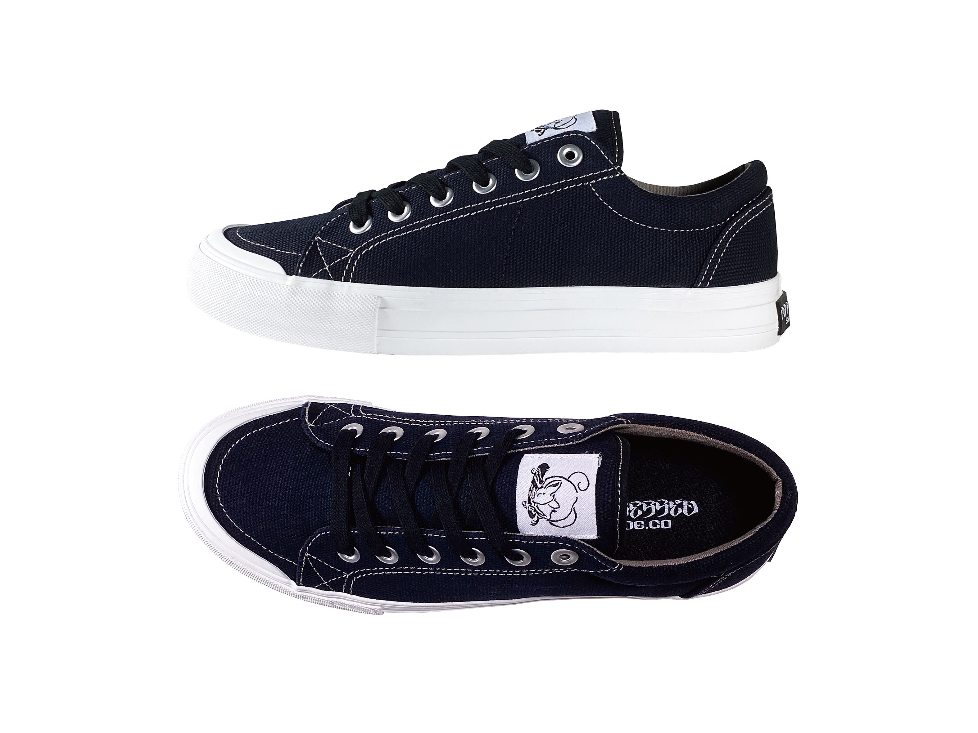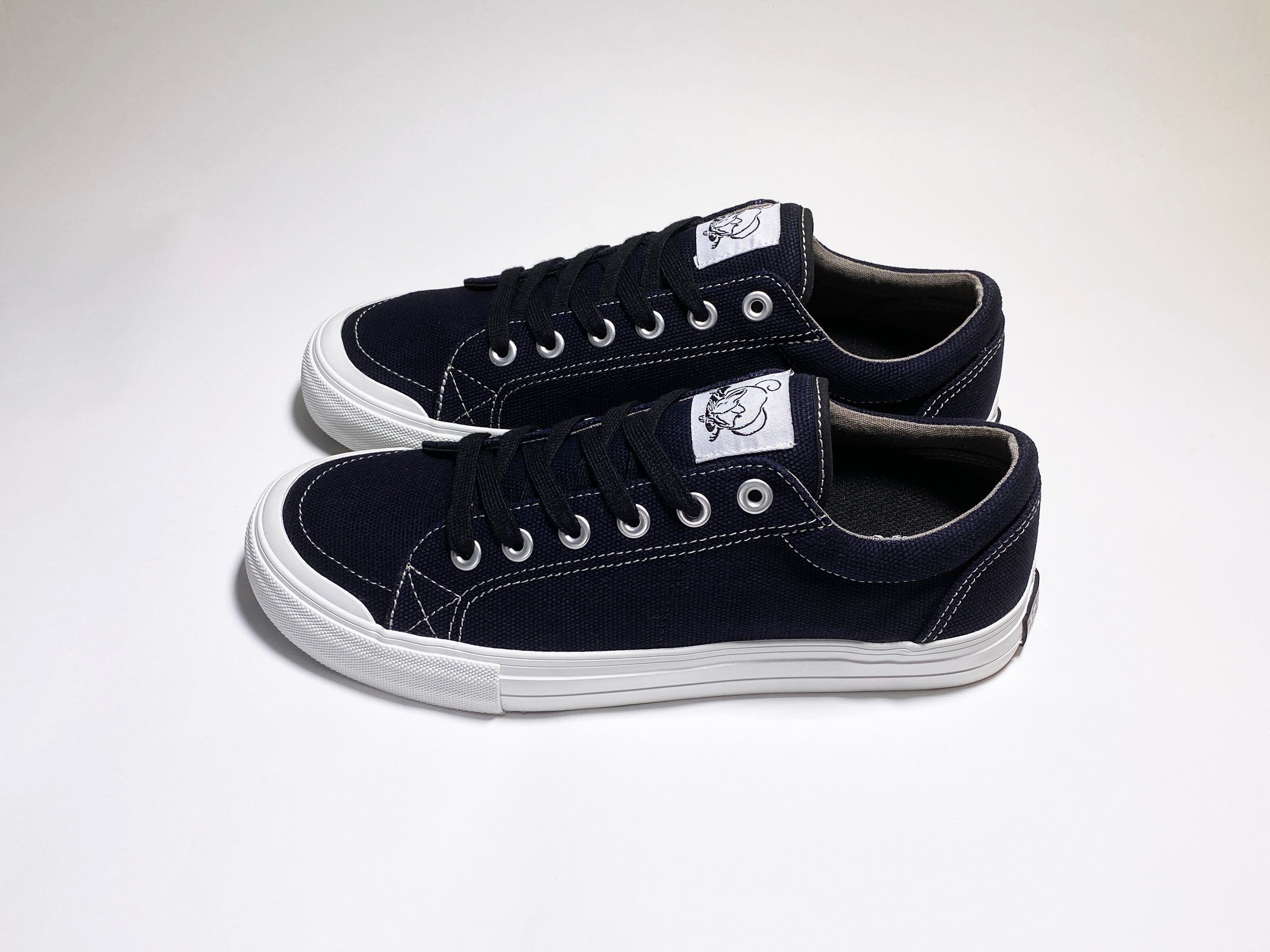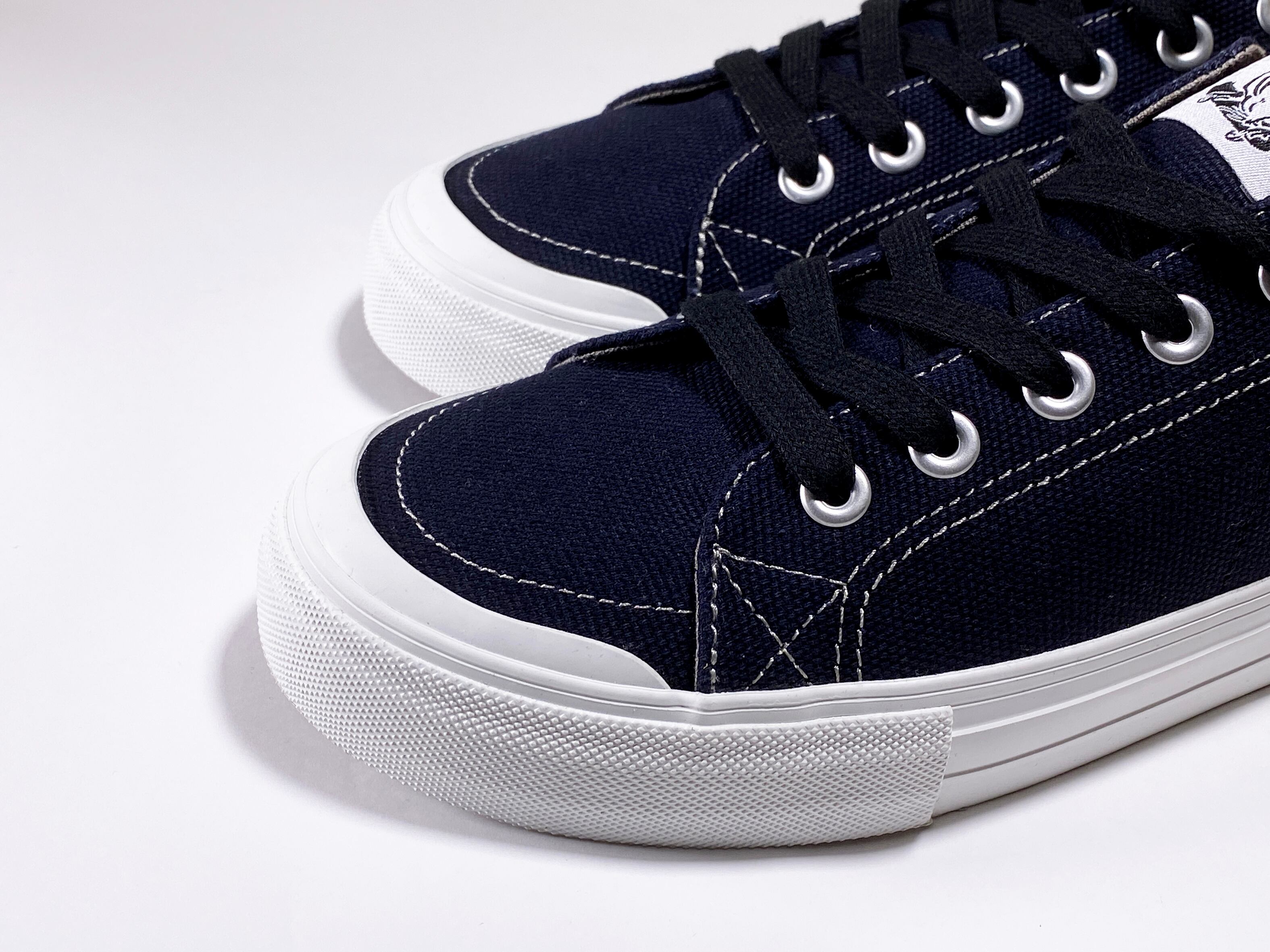 14ozのヘビーコットンキャンバスをアッパー全体に使用しています。オーリー等の摩擦により磨り減ってしまうつま先側部を二重構造にし、耐久性を強化。衝撃吸収性の高い高密度発泡ウレタンインソールを使用し、ヒール部分をハニカム構造にする事により耐久性と発散性を向上。こちらのモデルは外側がキャンバスで内側がヌバック素材になります。