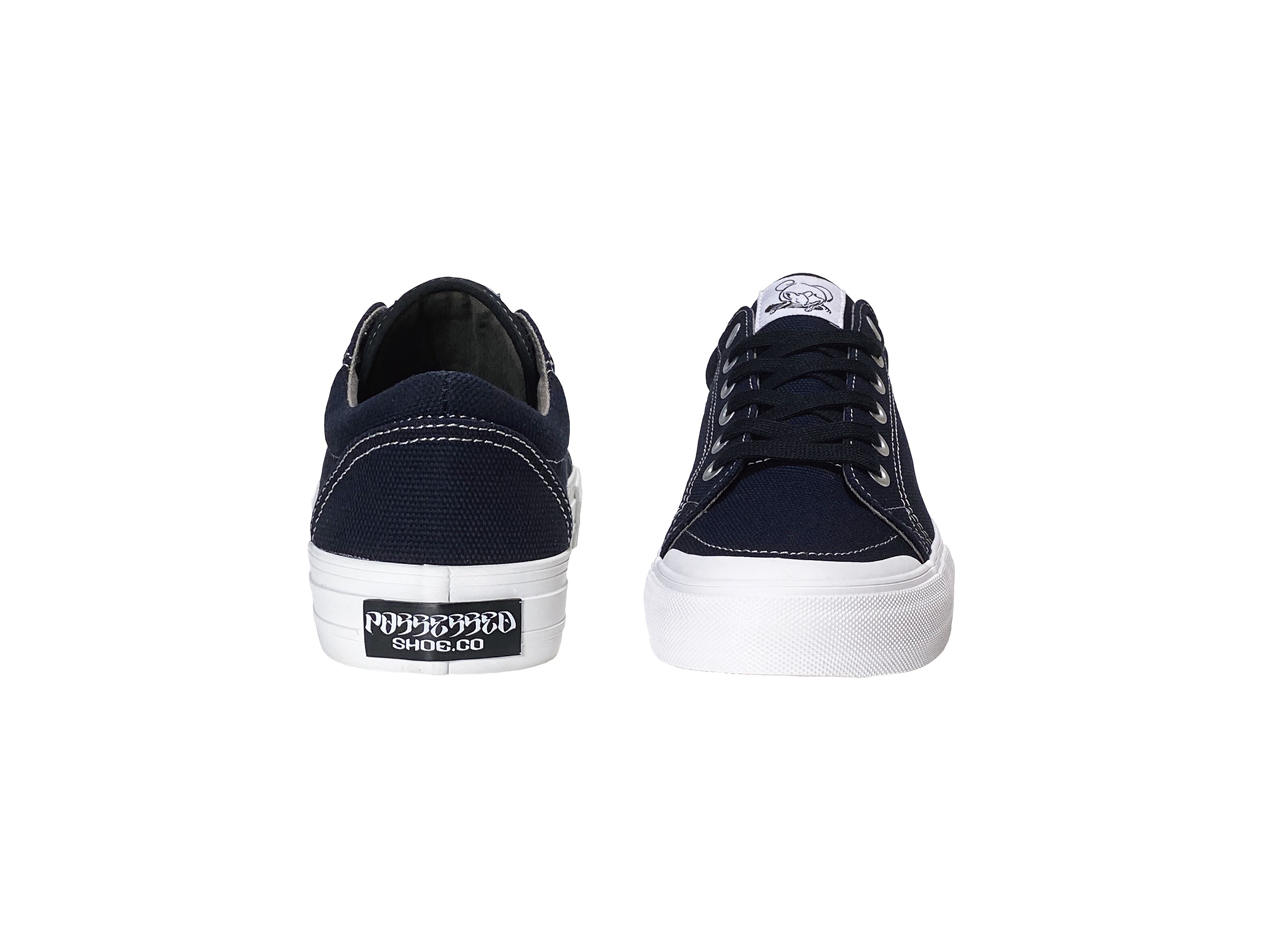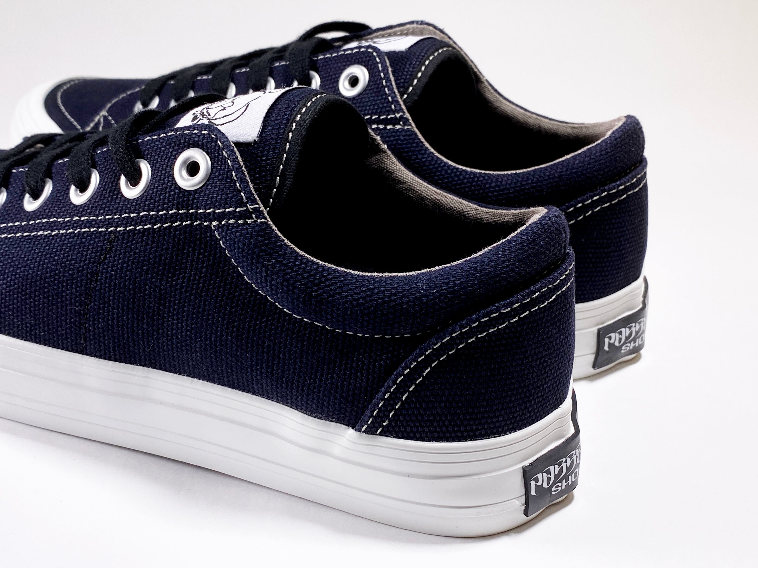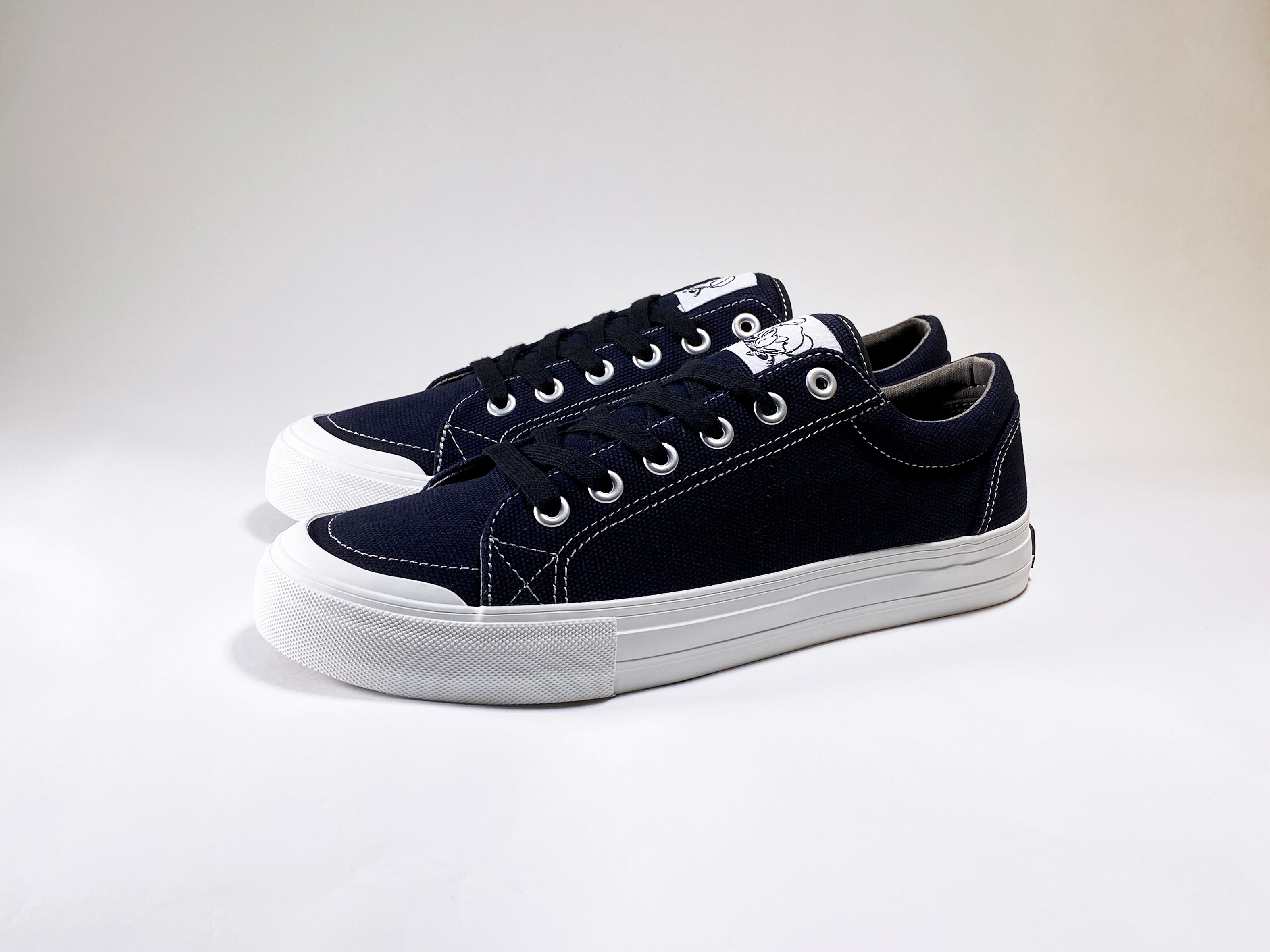 14ozのヘビーコットンキャンバスをアッパー全体に使用しています。オーリー等の摩擦により磨り減ってしまうつま先側部を二重構造にし、耐久性を強化。衝撃吸収性の高い高密度発泡ウレタンインソールを使用し、ヒール部分をハニカム構造にする事により耐久性と発散性を向上。こちらのモデルは外側がキャンバスで内側がヌバック素材になります。
