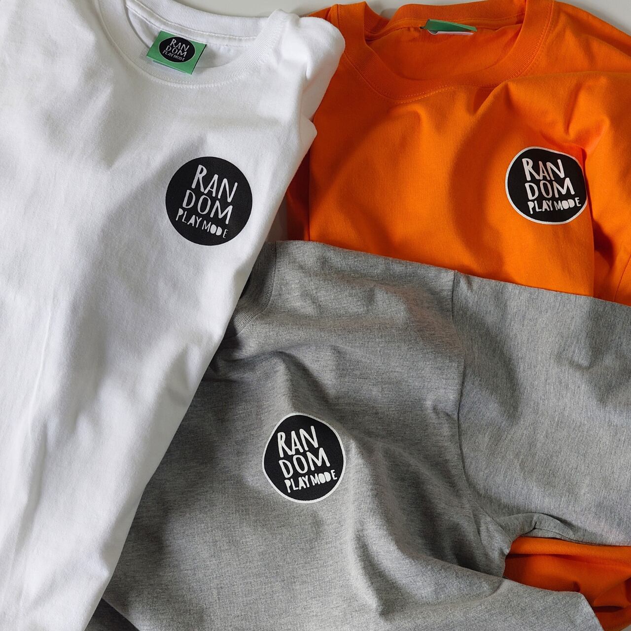 胸元と背中に "RANDOM PLAY MODE" オリジナルロゴをプリントしたTシャツ。