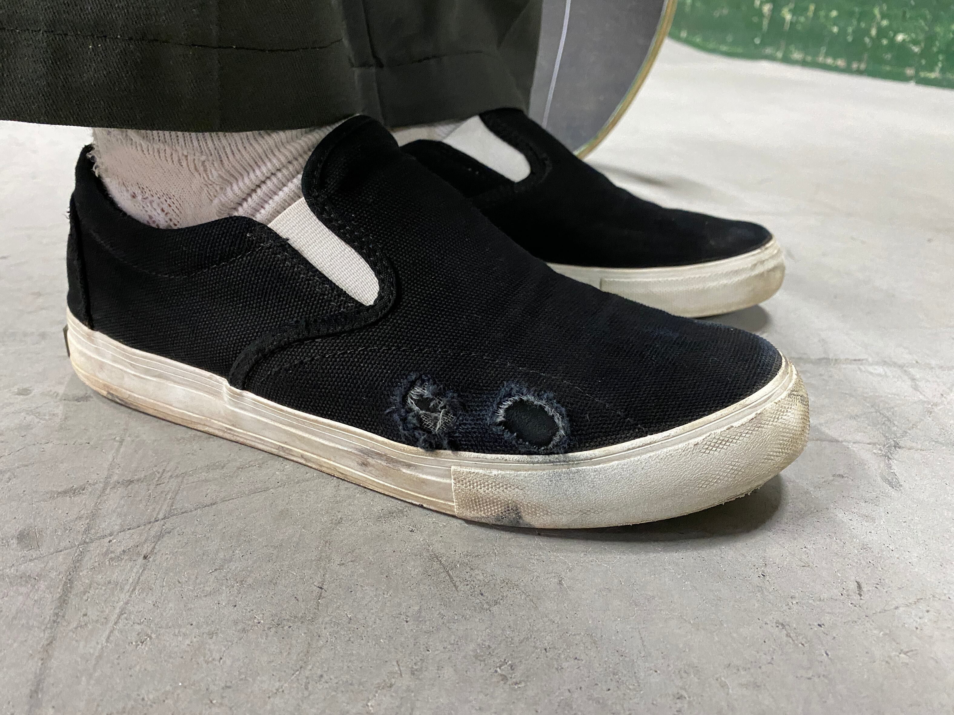 デザインのシンプルさと脱ぎ履きし易さはそのままに、ライディング時に脱げずらく丈夫な作りのスケートボード用 SLIP ON。